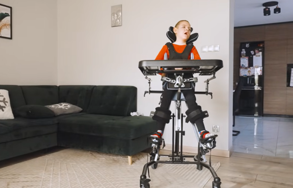 Ta rehabilitacja jest rehabilitacją ciągłą. Jej zadaniem jest przeciwdziałanie przykurczom, przeciwdziałanie występowaniu wady postawy. Jest to taka rehabilitacja, która cały czas walczy o to, żeby Kacpra spionizować, o to, żeby utrzymać osiowość kończyn, o to, żeby zapewnić odpowiednie funkcjonowanie jego układu. – wskazuje dr n. med. Piotr Moneta, fizjoterapeuta dziecięcy.